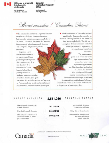 A SCNT-1 line patent is issued in Canada. |